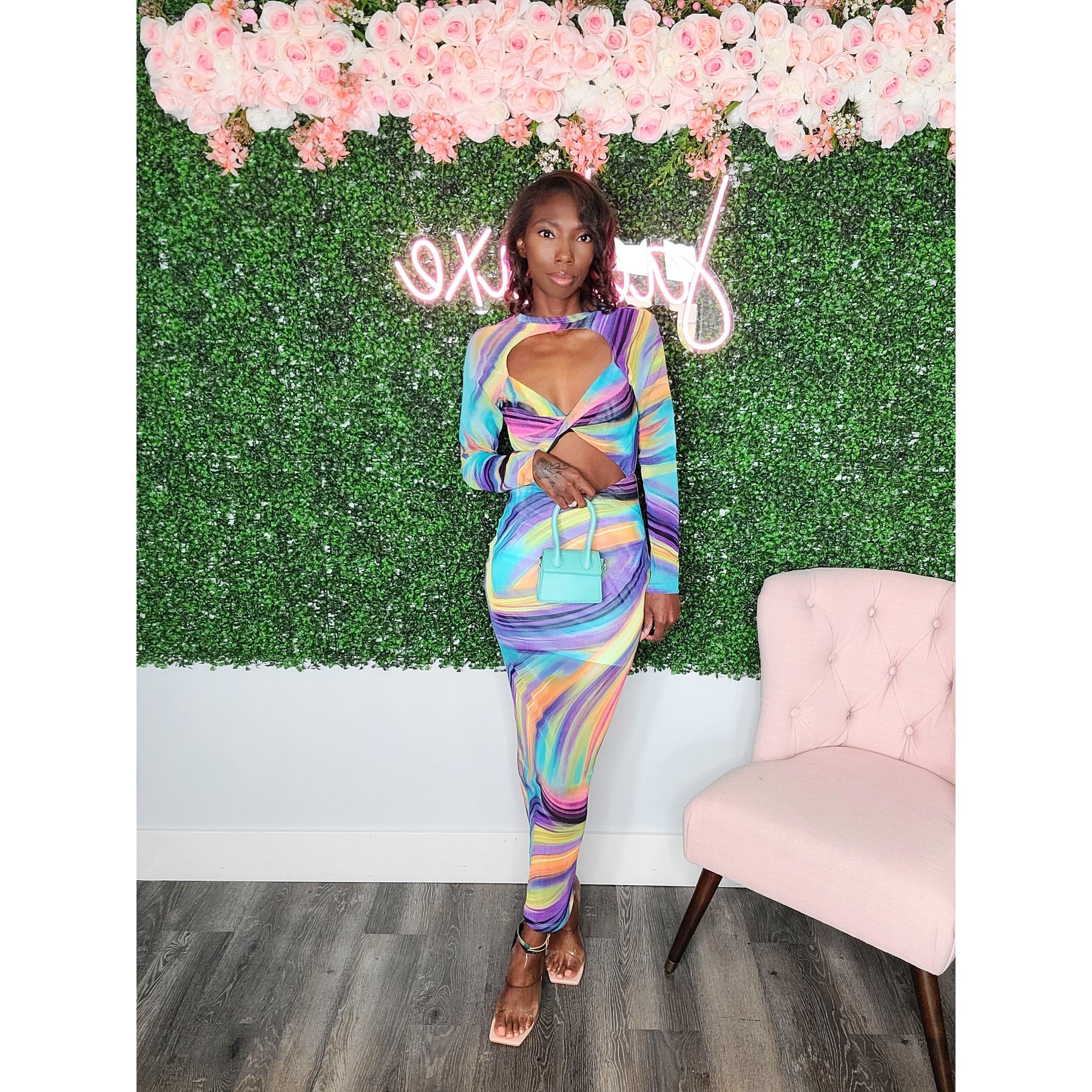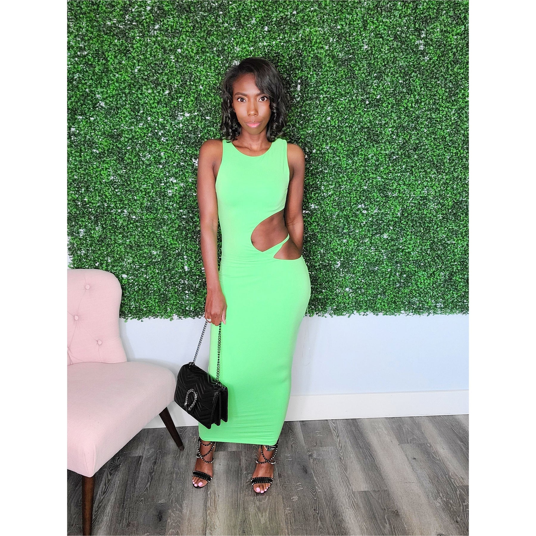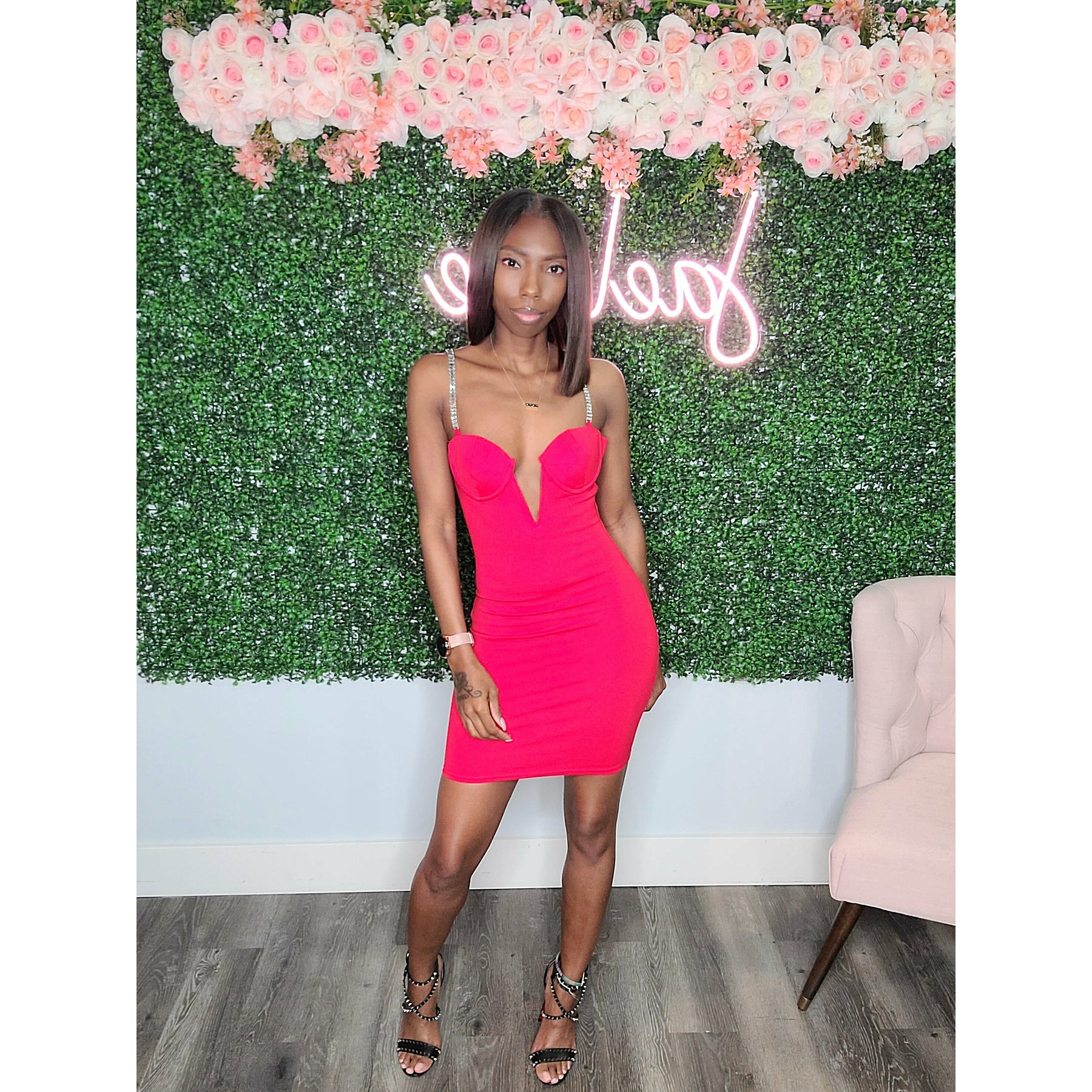 Date night just got a little sexier! The Inez Jewel Strap dress features jeweled adjustable straps, lightly padded bra, back zipper closure, a deep v front design and is 65% rayon, 30% nylon and 5% spandex for added stretch. This dress runs true to size for most.